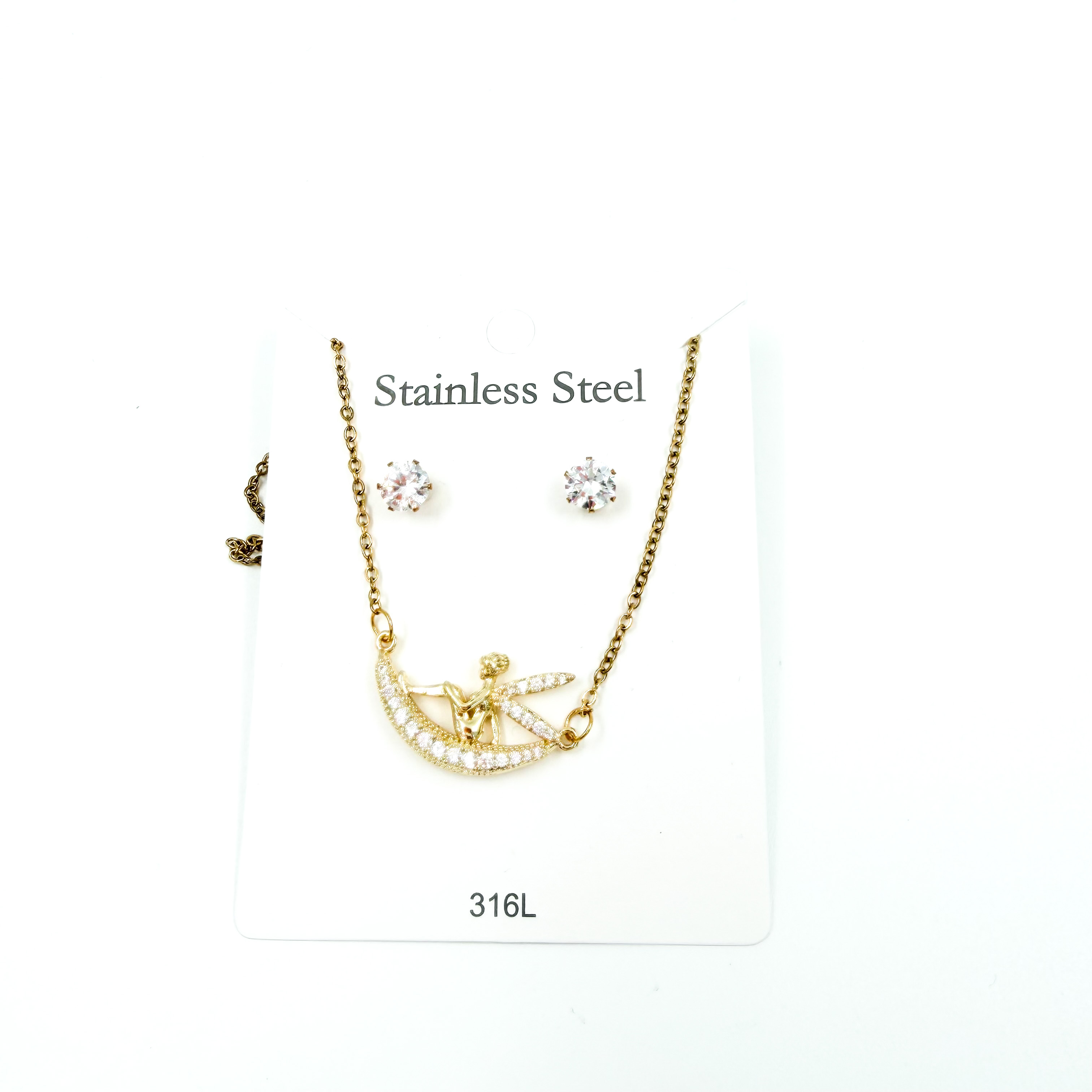 Σετ ατσάλινο κολιέ με σκουλαρίκια χρυσό