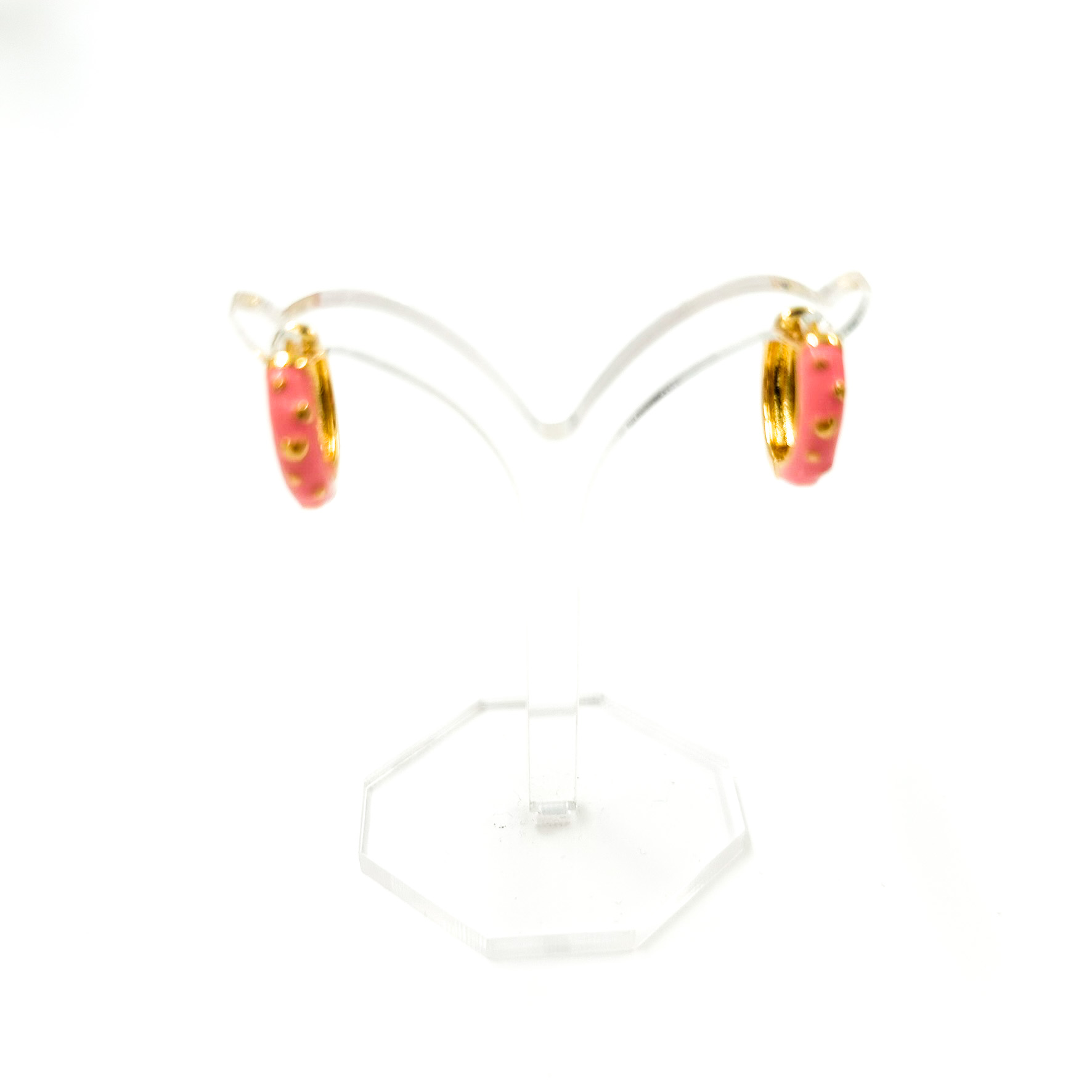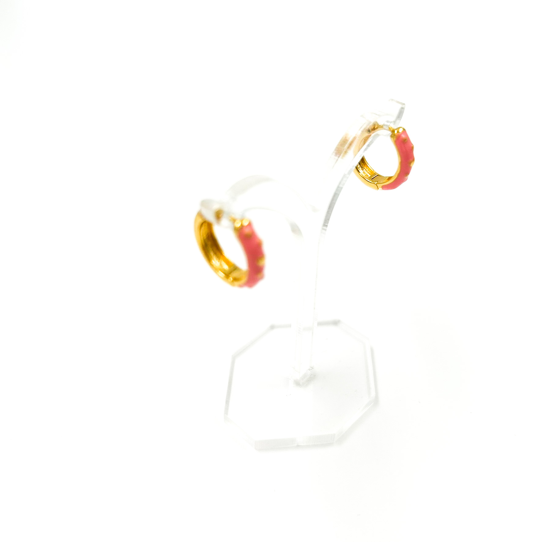 Κρικάκια ατσάλινα ροζ σμάλτο χρυσά