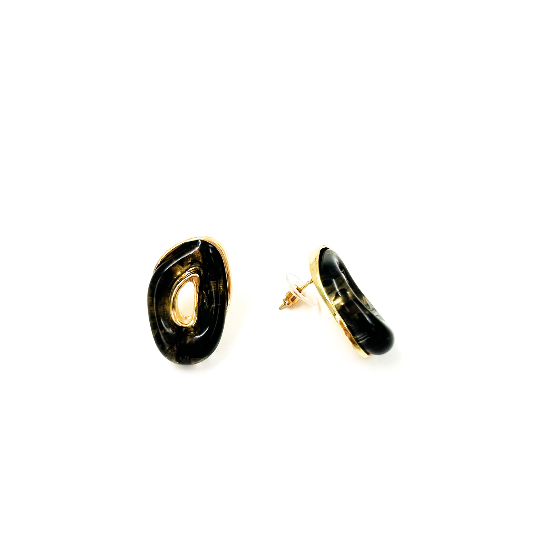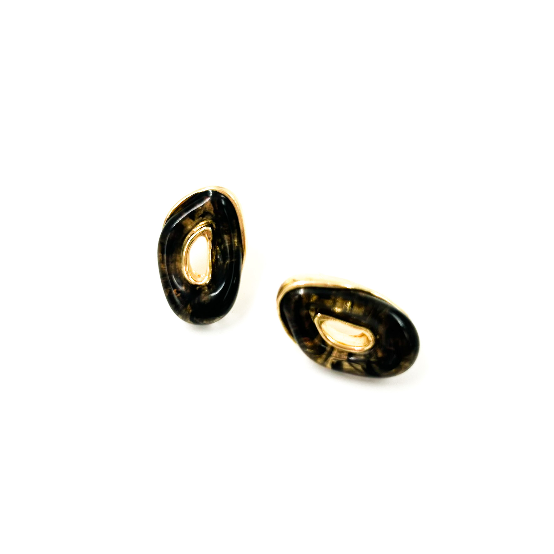 Σκουλαρίκια ατσάλινα οβάλ με μαύρη πέτρα χρυσό