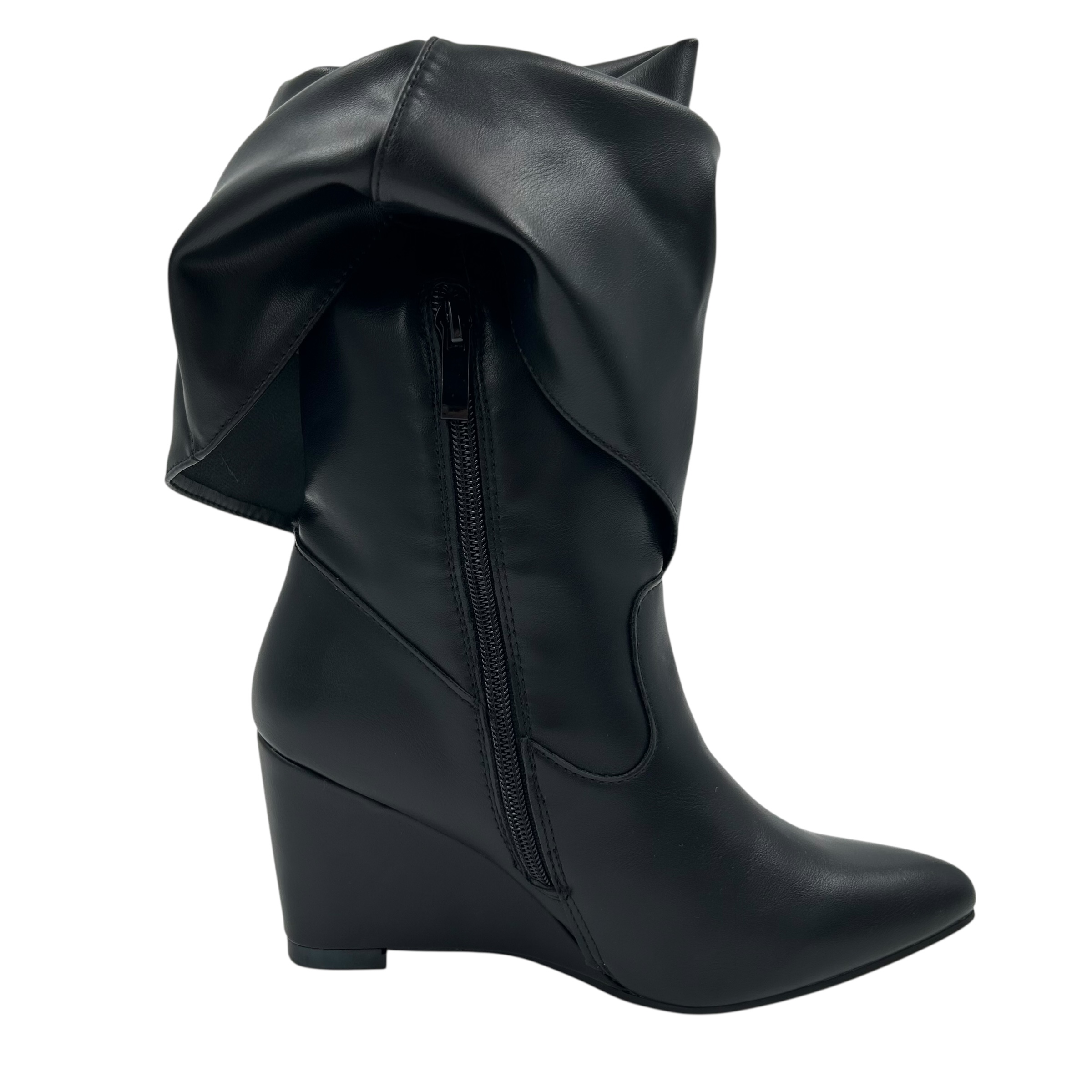 Πλατφόρμα μποτάκι μαύρο με εσωτερικό φερμουάρ και αγκράφα.