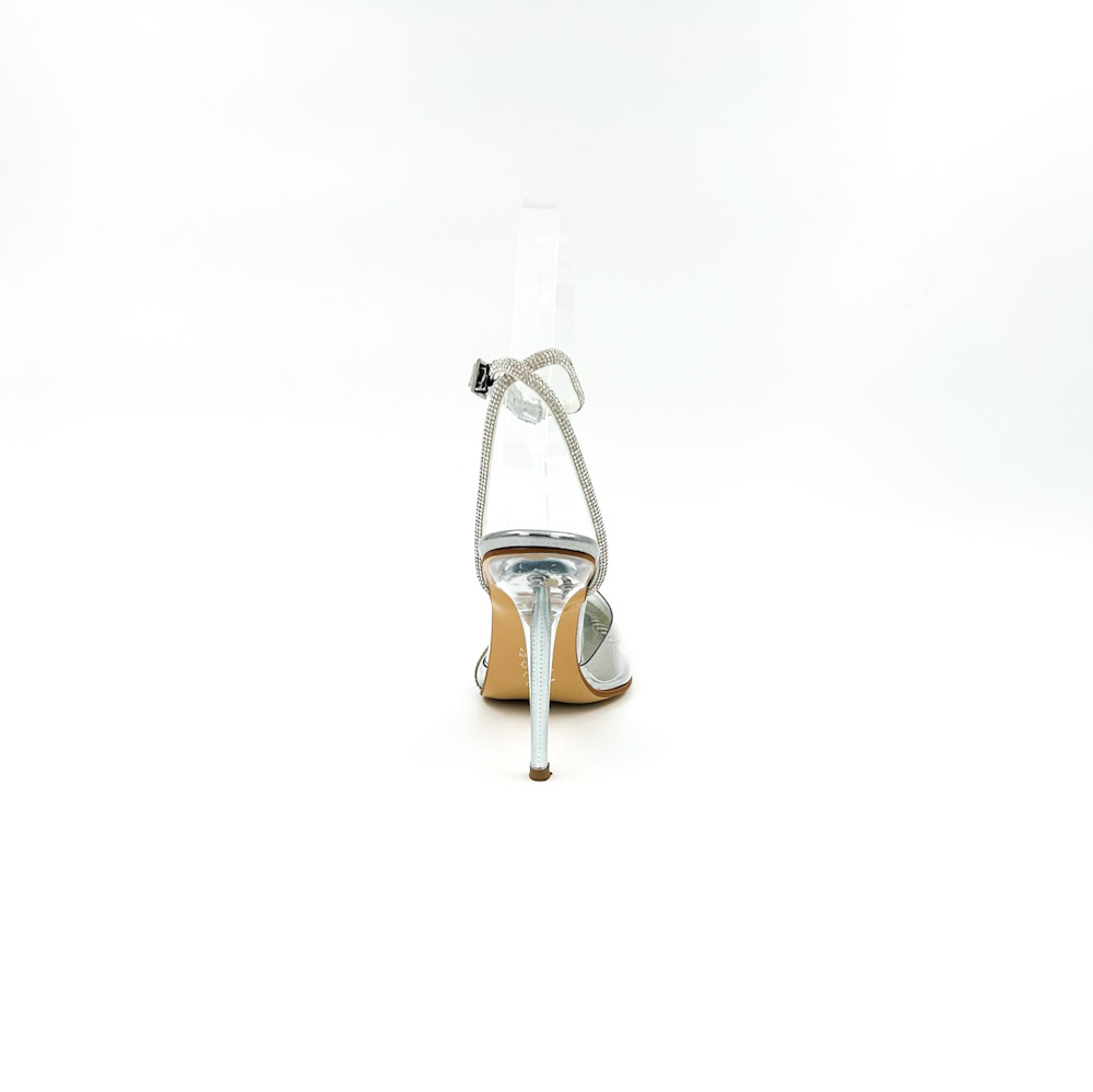 Γόβα με διαφάνεια και στρας, με λεπτό stiletto τακούνι