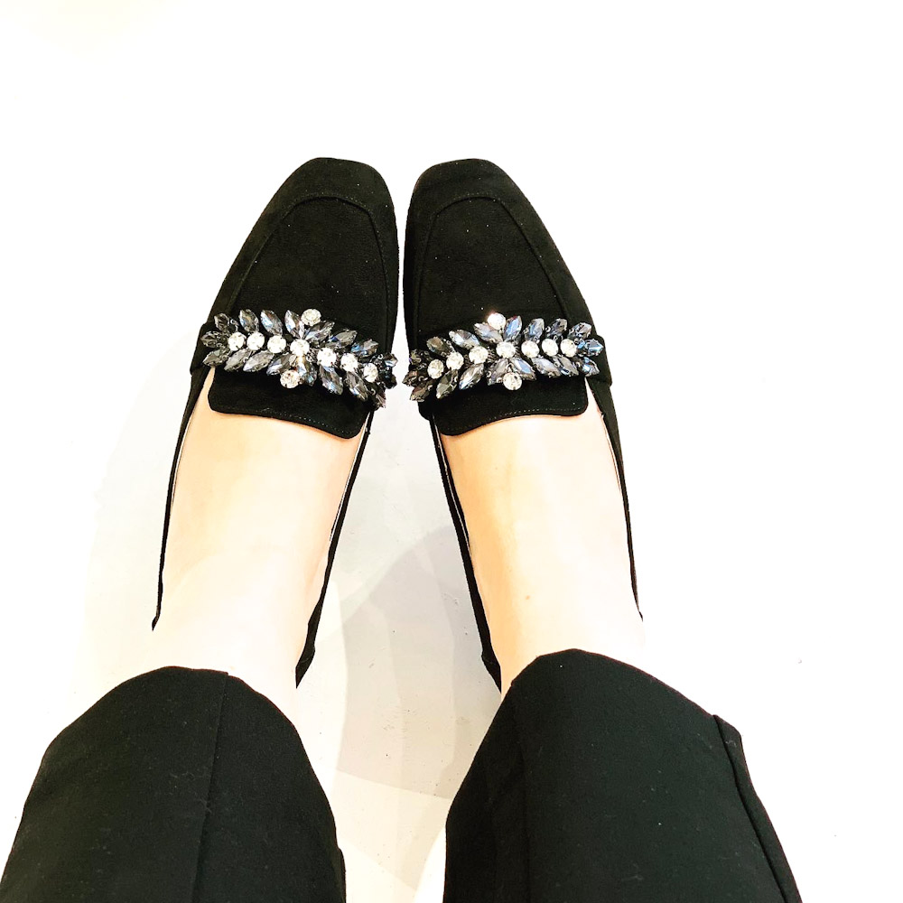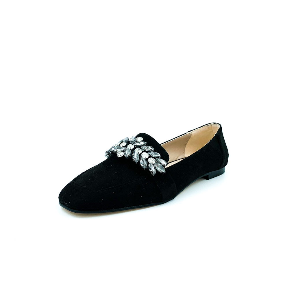 Loafers γυναικεία με αγκράφα με στρας, σουέτ, μαύρο χρώμα